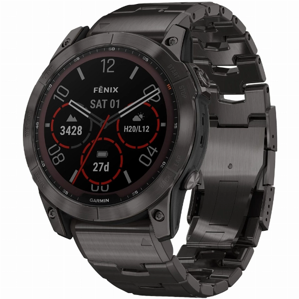 Аналоги Garmin Fenix 7X Pro, Sapphire Solar DLC Titanium Carbon Gray/Vented Titanium Bracelet, 010-02778-30