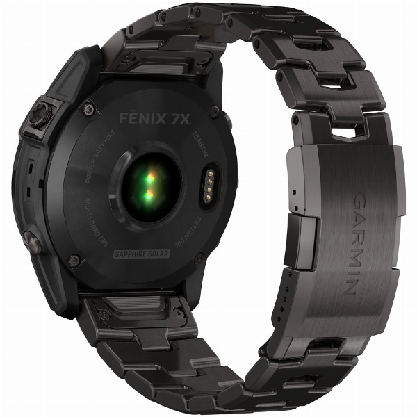Garmin Fenix 7X Pro, Sapphire Solar DLC Titanium Carbon Gray/Vented Titanium Bracelet, 010-02778-30